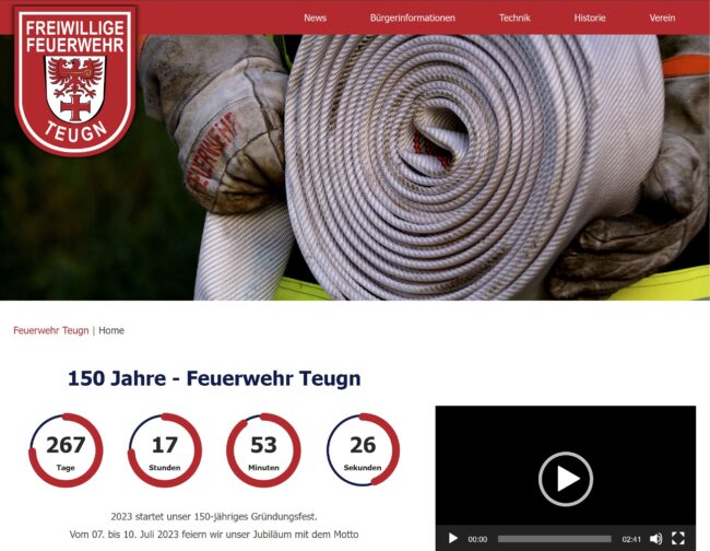 Nach etwa 10 Jahren haben wir unser viel Zeit genommen um unsere Website zu überarbeiten. Mit unserer neuen Seite wollen wir euch einen Einblick in unsere Tätigkeiten geben: So finden Sie hier die letzten Einsätze, alle Termine und sonstige Neuerungen. Zudem haben wir Informationen und Tipps zusammengetragen, die ihnen helfen sollen, im Alltag Gefahren abzuwenden, für Notlagen vorbereitet zu sein oder egal wie viele Spuren auf einer Fahrbahn sind, sich bei einer Rettungsgasse richtig einzuordnen. Sehr gerne laden wir Sie auch ein, einen Blick in unsere Historie zu werfen. Nach fast 150 Jahren Feuerwehr Teugn kann unser Verein viel erzählen und hat sehr viel durchgemacht. Nehmen Sie sich Zeit um unser Internetangebot anzuschauen. Wenn Sie weitere Fragen haben, können Sie uns gerne kontaktieren!